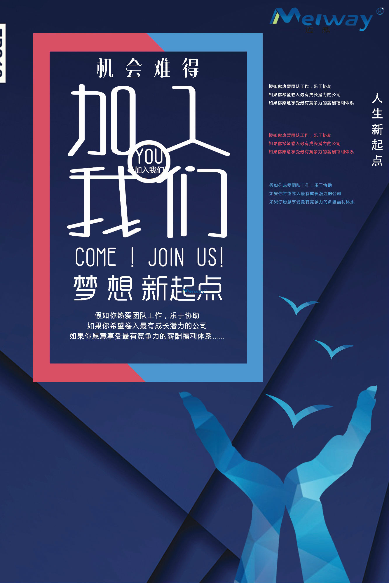 邁威在飛速發(fā)展的同時,期待有更多的有志之士能夠加入到邁威,為公司注入源源不斷的活力,為實現(xiàn)企業(yè)的遠(yuǎn)大目標(biāo)而共同努力!