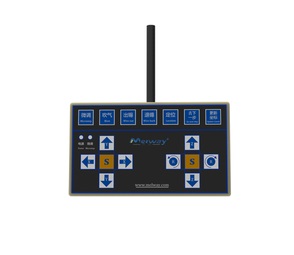 手持式示教手柄用于焊錫機(jī)的運(yùn)動(dòng)控制、編寫(xiě)焊接程序及手動(dòng)調(diào)試。